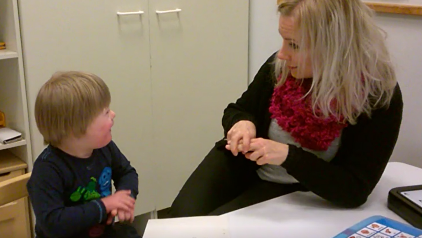 • perheessä (esim. lapsen tai aikuisen kanssa, jolla on kielellisiä haasteita)